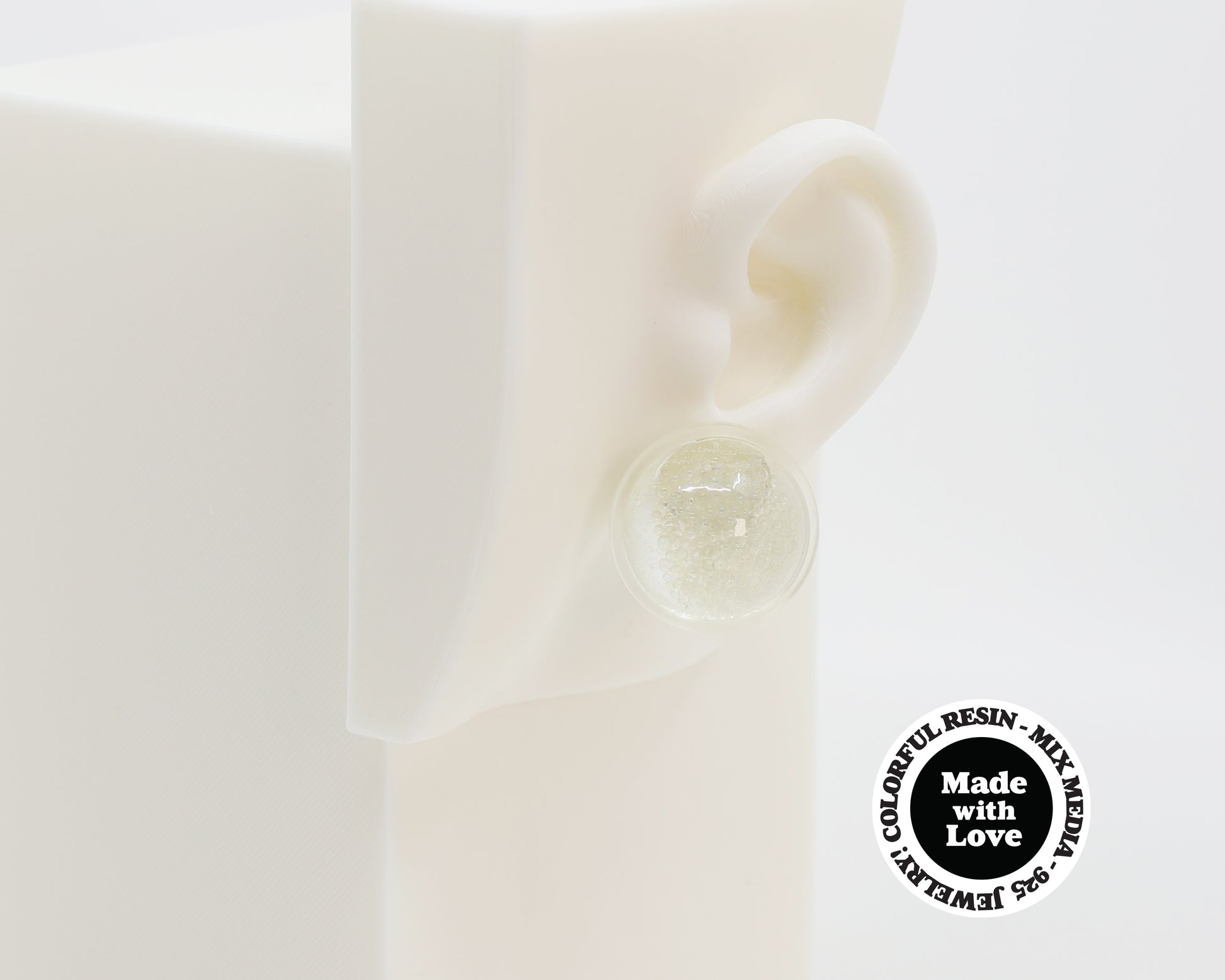 These earrings showcase a distinctive asymmetrical design. They feature textured, transparent dome resin designs mounted on a clear 3D resin-printed base. This modern, one-of-a-kind design will add an artistic touch to any outfit!