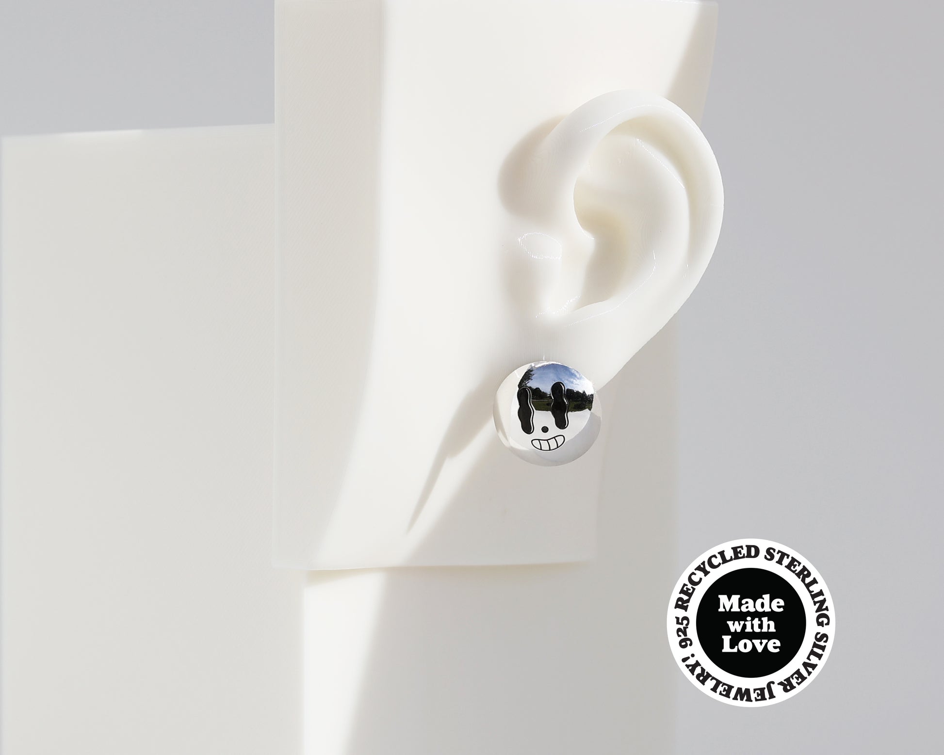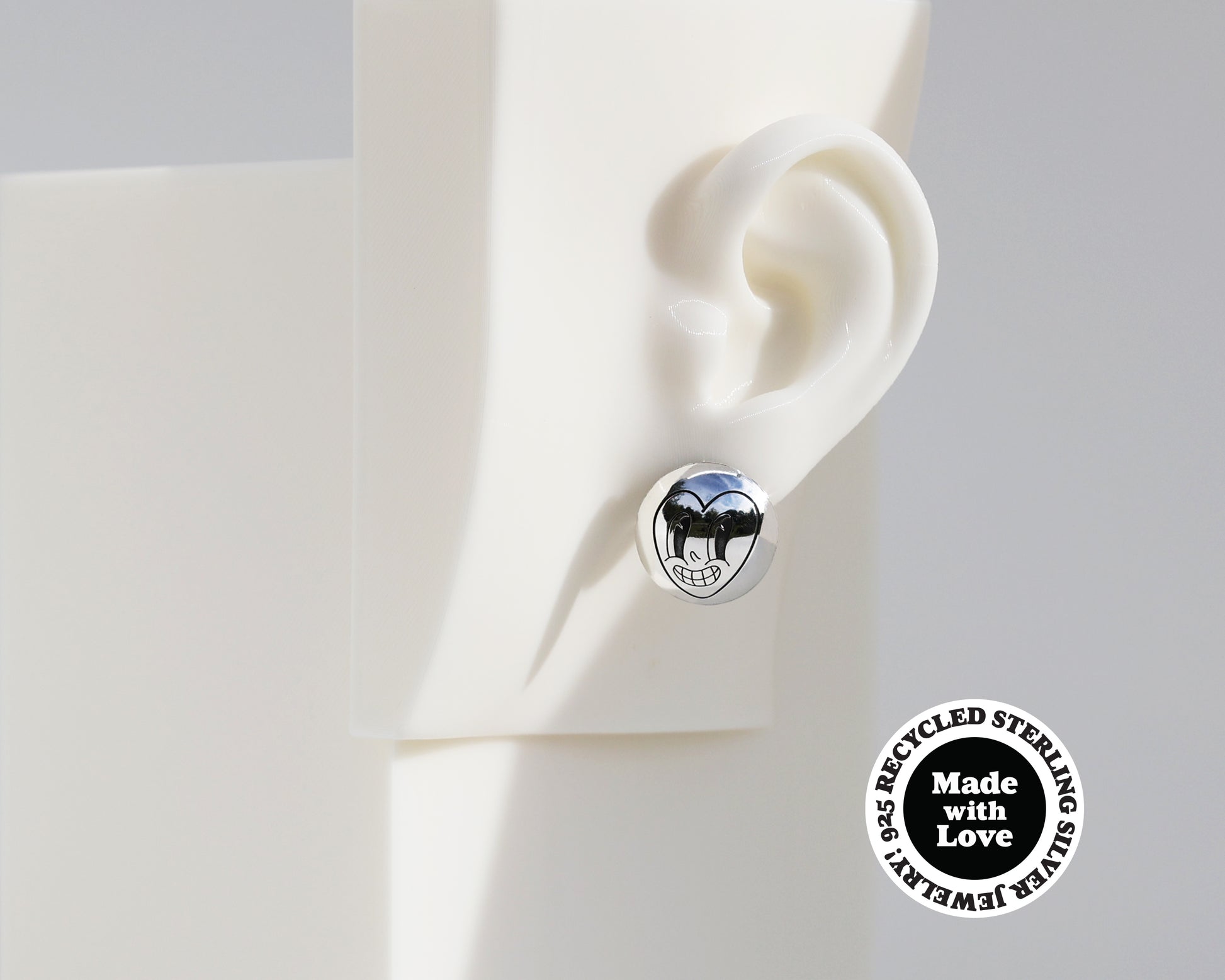 Enhance your ensemble with these captivating sterling silver asymmetrical dome earrings. The unique asymmetry of the engraved "Happy Heart" & "Happy Face" design creates visual interest, making these earrings stand out from the crowd.